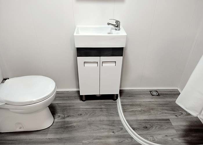 Menyelesaikan pengalaman tinggal, Munich Tiny House memiliki kamar mandi yang dirancang dengan baik dilengkapi dengan perlengkapan dan perlengkapan penting.kamar mandi memberikan fungsi tanpa mengorbankan gaya, menciptakan ruang yang nyaman dan segar.