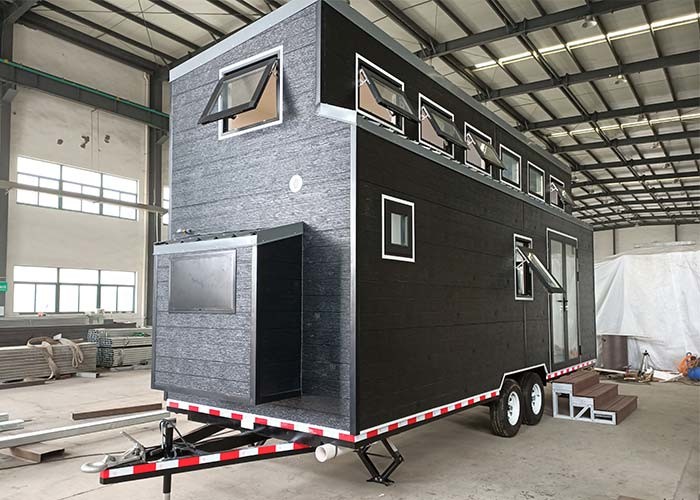 Mobil Baja Ringan Prefabrikasi Rumah Kecil Pada Roda Dengan WPC Papan Tembok Standar Australia