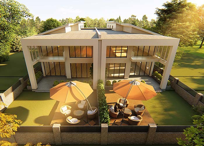 Villa Dupleks Mewah Prefabrikasi dengan Rangka Baja Ringan atau Sistem Panel