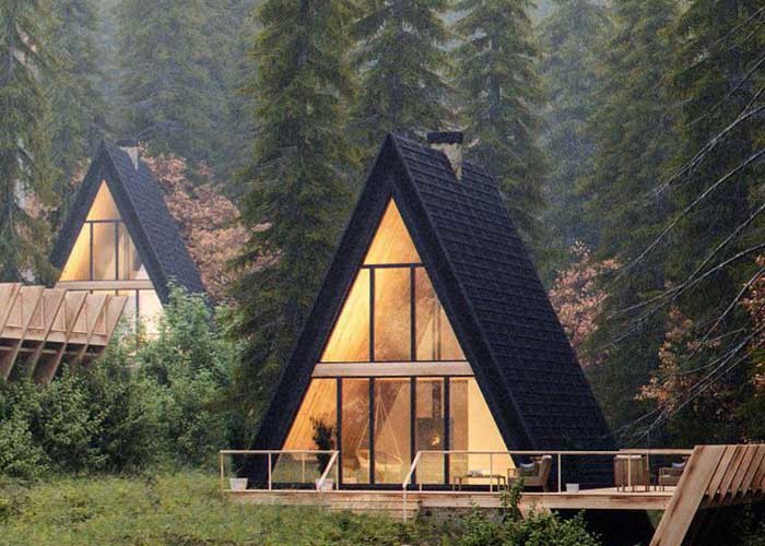 Segitiga adalah bentuk yang kuat. Segitiga terlihat dramatis, mengubah desain rumah modern atau menciptakan rumah seperti tenda yang akrab dengan nilai sentimental.Bentuk segitiga dapat dicampur dalam desain arsitektur dalam berbagai kombinasi, menciptakan rumah modern yang tidak biasa dan unik yang terlihat seperti karya seni kontemporer yang besar dan memiliki desain interior yang luar biasa.