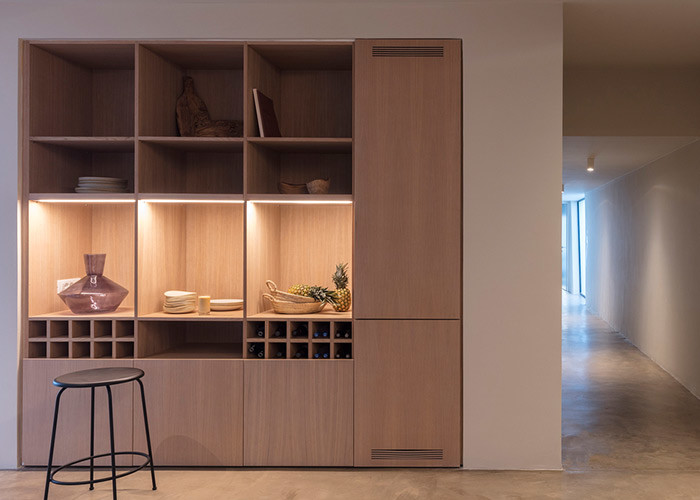 - Di tengah adalah ruang tamu, dapur terbuka, dan area terbuka restoran.