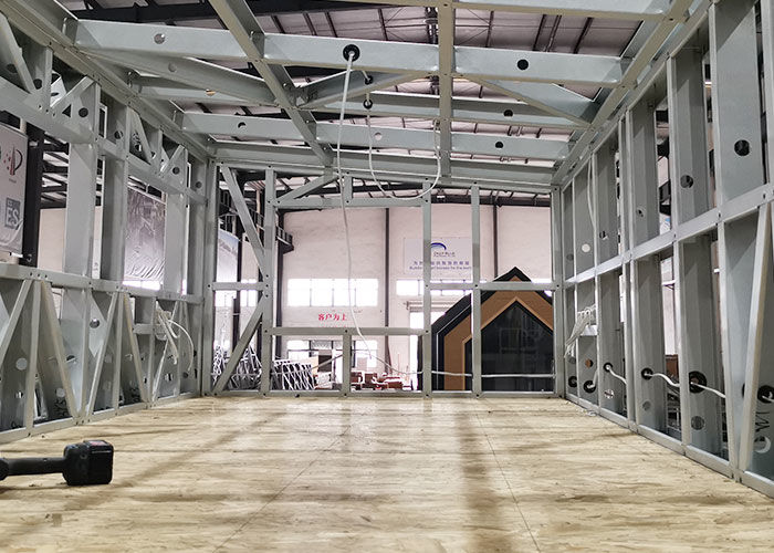 10) Pengemasan dan pengiriman: kontainer 140SQM/ 40'HQ untuk struktur saja dan kontainer 90SQM/ 40'HQ untuk struktur dengan bahan dekorasi.