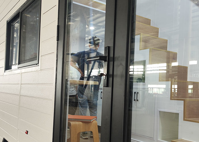 Eksteriornya memiliki sisipan logam termal putih 16 mm, memberikan Cider Box tampilan modern dan minimalis.memastikan daya tahan dan ketepatan dalam konstruksiLantai logam termal juga memberikan isolasi yang sangat baik, meningkatkan efisiensi energi rumah.