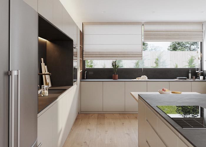 Menyelesaikan tata letak yang praktis adalah dua ruang penyimpanan terpisah dan, di ujungnya, garasi dua mobil yang luas, memastikan ruang yang cukup untuk kendaraan dan barang-barang.